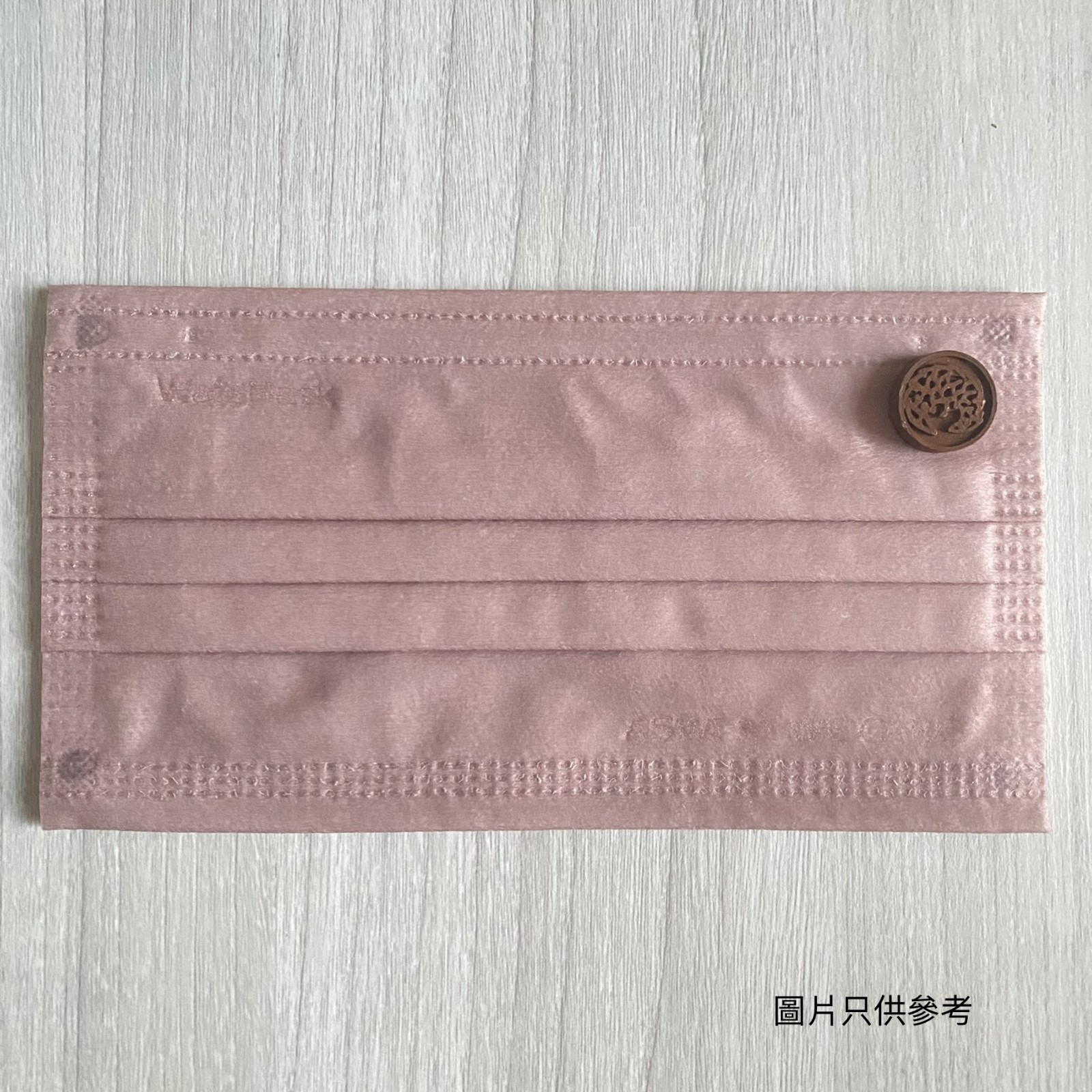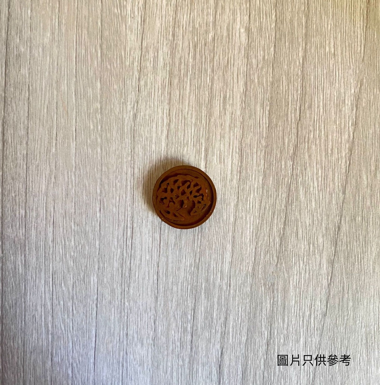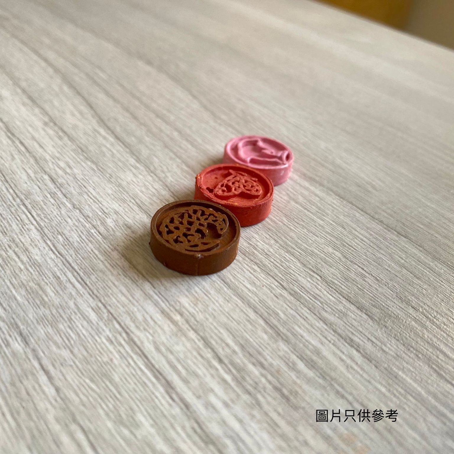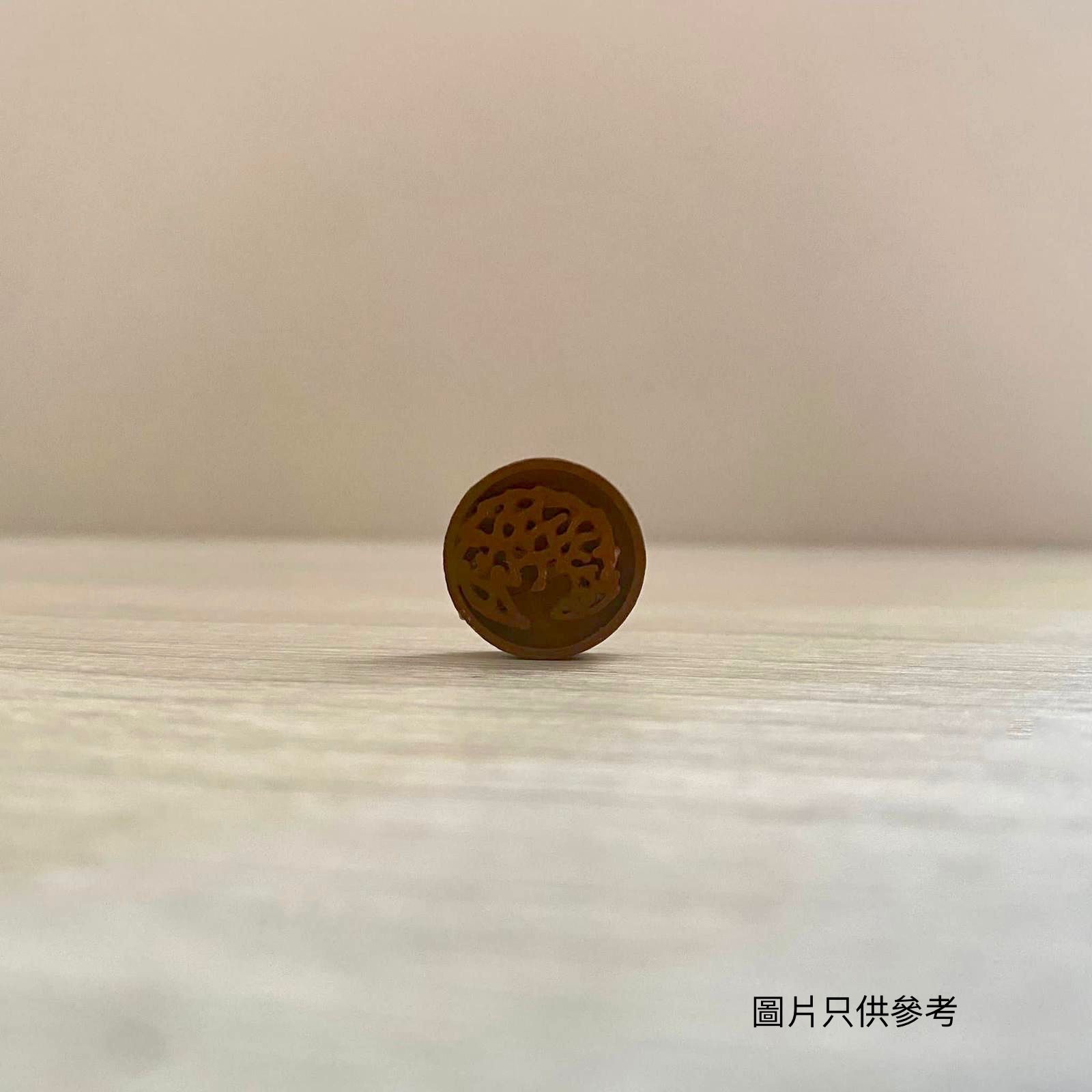 口罩扣以石膏粉手工製作而成,直徑大約為16mm,以圓型作底部,並以代表著穿山甲的土黃色作主色。