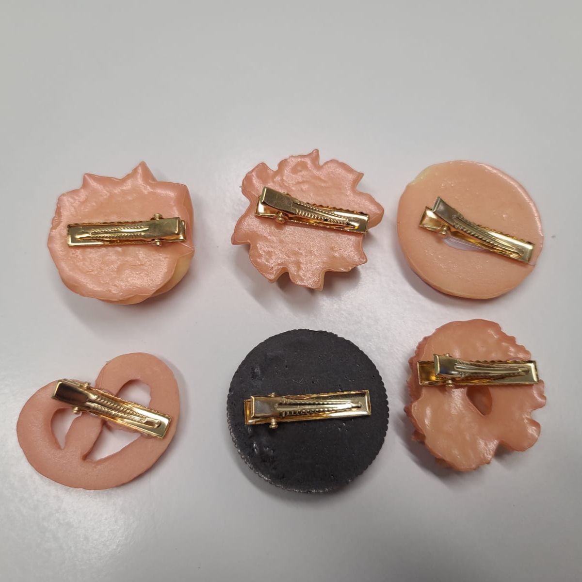 相信藍罐曲奇是每個香港人吃過的,亦是大家小時候的回憶。每一組仿藍罐曲奇發夾,有六個發夾,有不同的款色選擇。這款仿藍罐曲奇發夾的設計比例一比一仿照曲奇的大小,亦仿照曲奇的紋路,營造出最真實的效果。