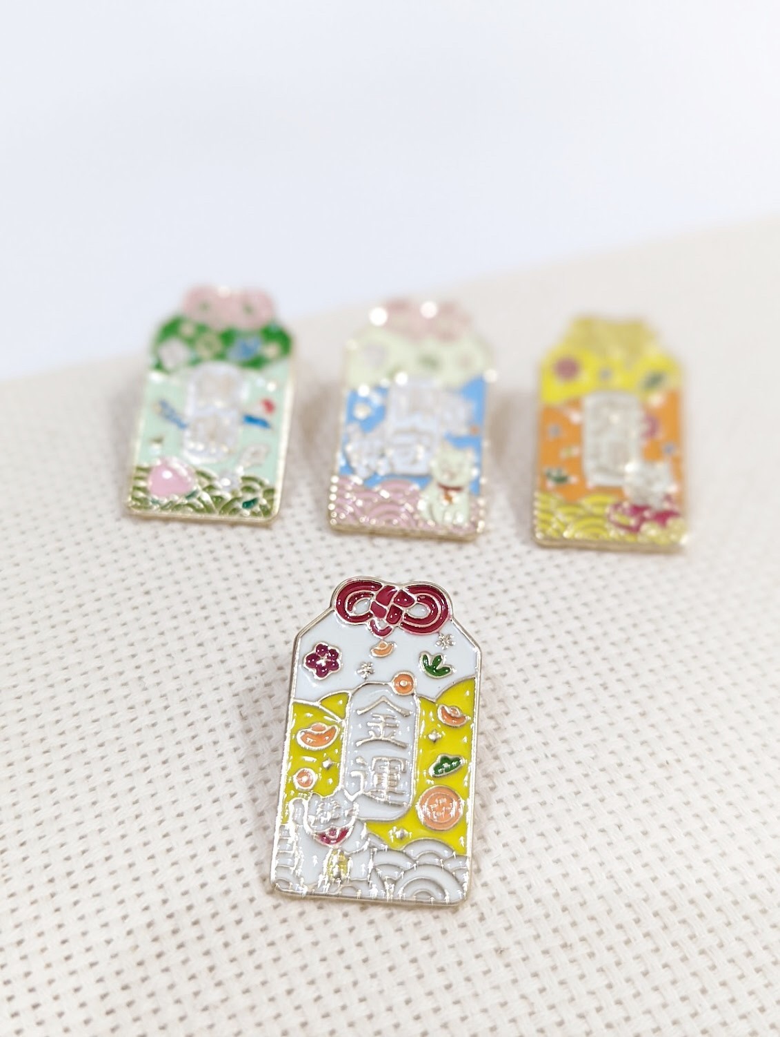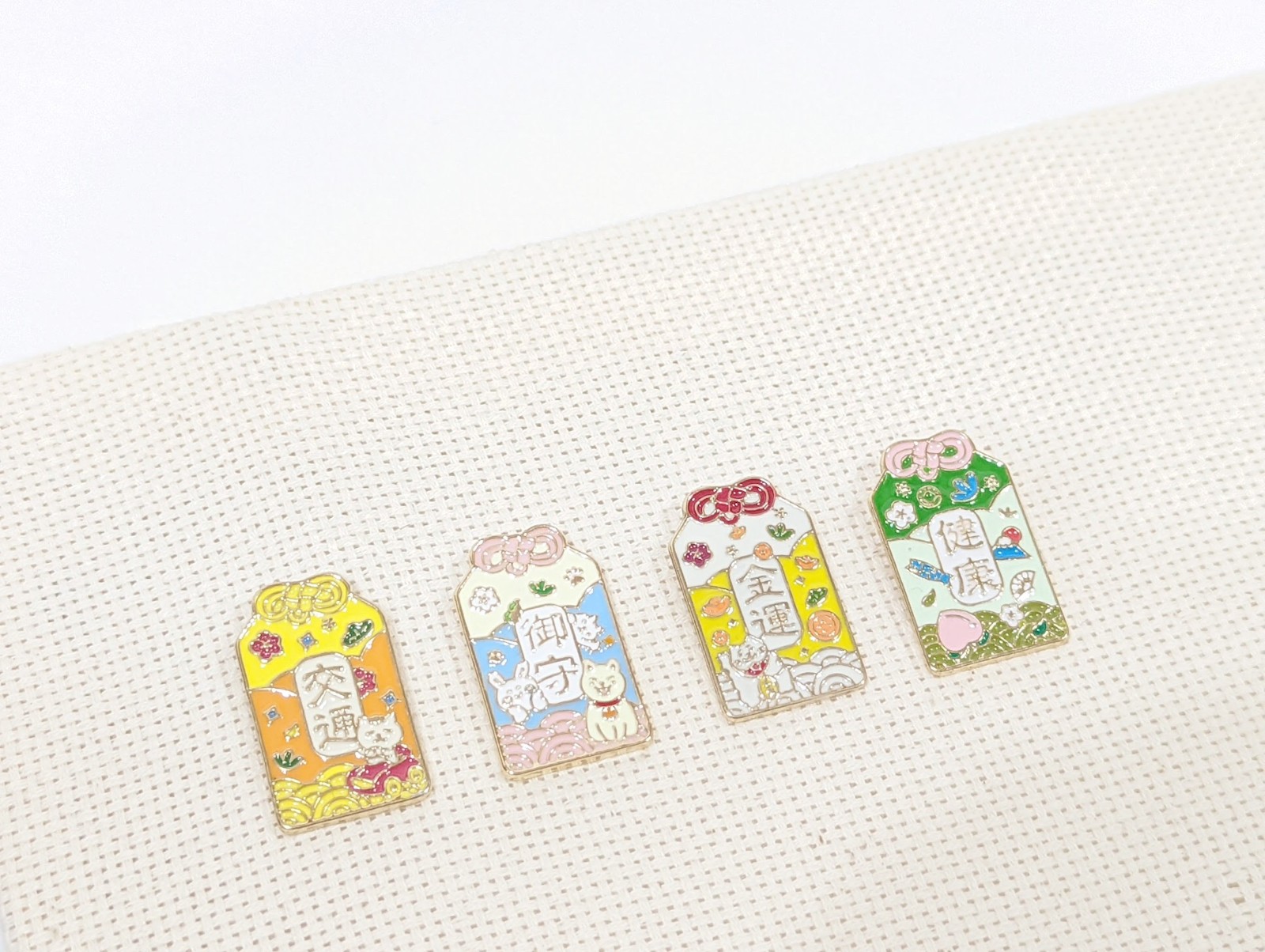知道大家都好掛住鄉下㗎喇,所以我哋特登入咗四個唔同款式嘅御守襟章,分別係交通、金運、御守同健康。唔好睇佢哋細細粒咁,糖果色系嘅襟章絕對可以幫大家單調嘅袋仔加啲點綴~