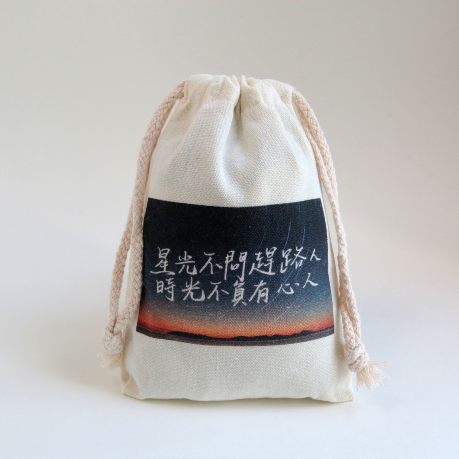 原創手寫字句入畫設計的帆布索繩袋,簡單實用又不失個人風格。帆布材質柔軟舒適,適合裝載出行的大小物件,讓你更容易收拾行裝,使背包更加整齊,出門更輕便。