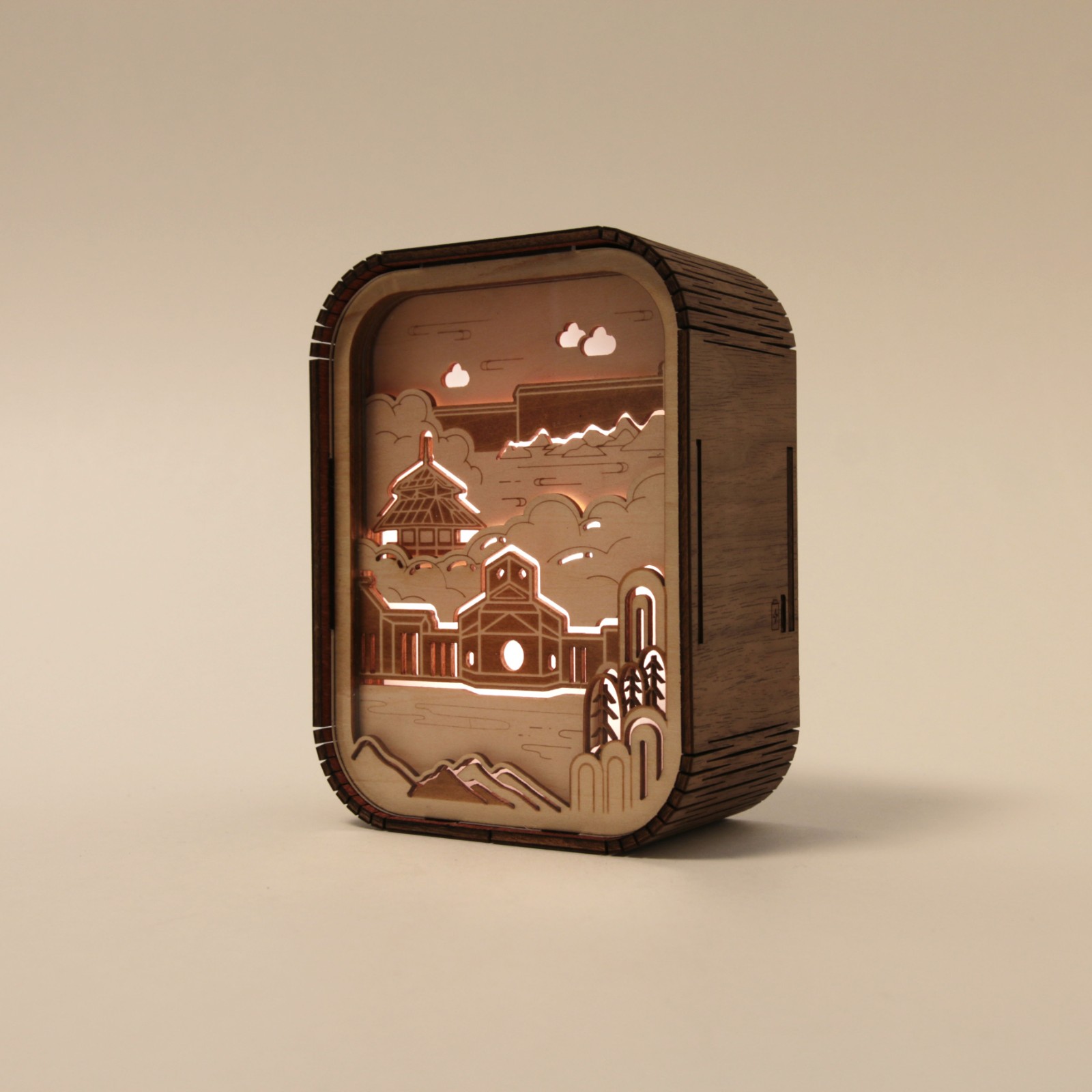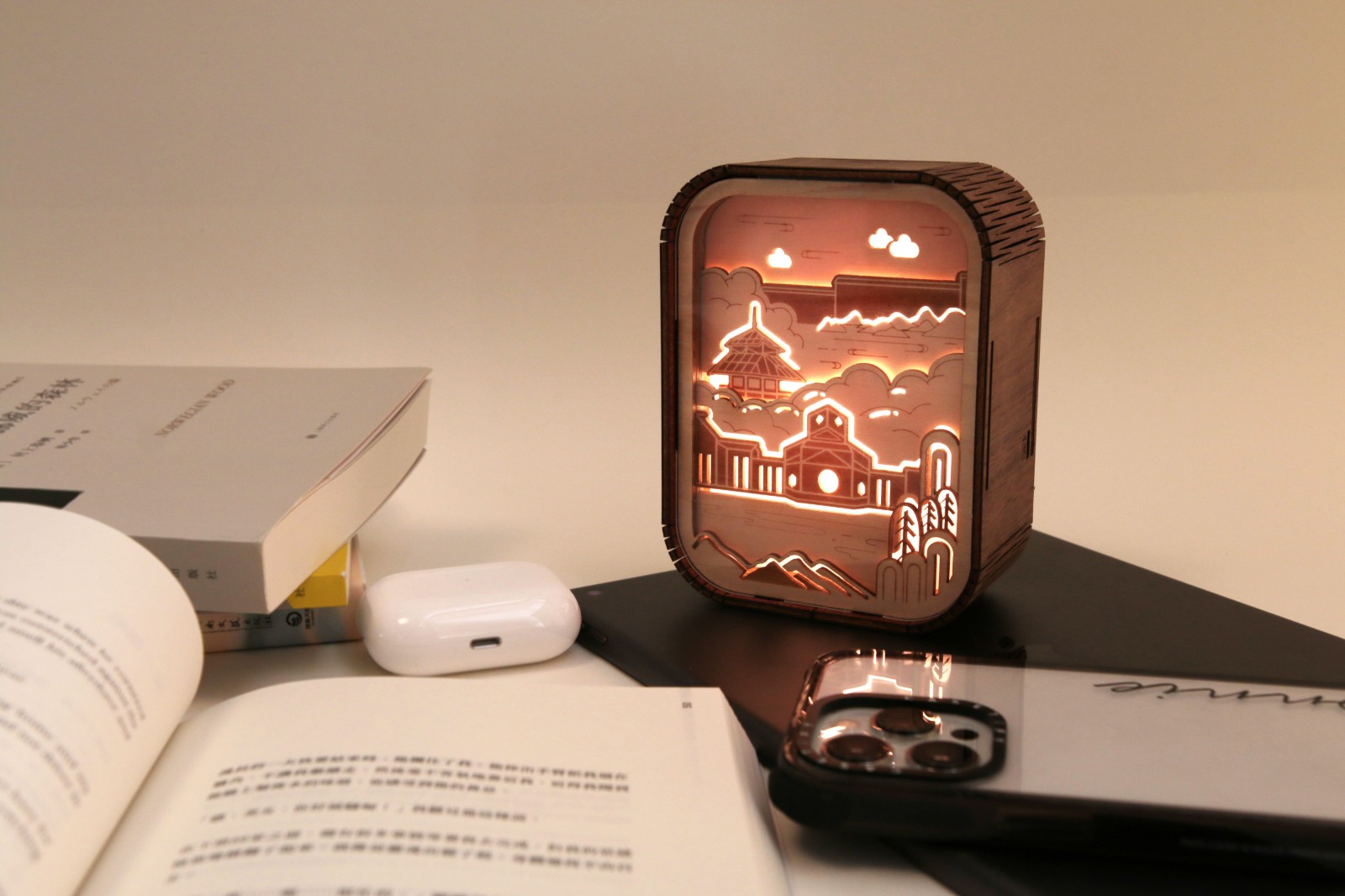 點一盞夜燈,觀一方世界。夜燈採用四層椴木鏤空交疊的設計,營造出豐富的層次感,錯落有致。透過樸實無華的木紋,層層疊疊的木質結構,令氤氳的燈光有如月光般柔和,在靜謐的夜晚散發出親近與溫暖。