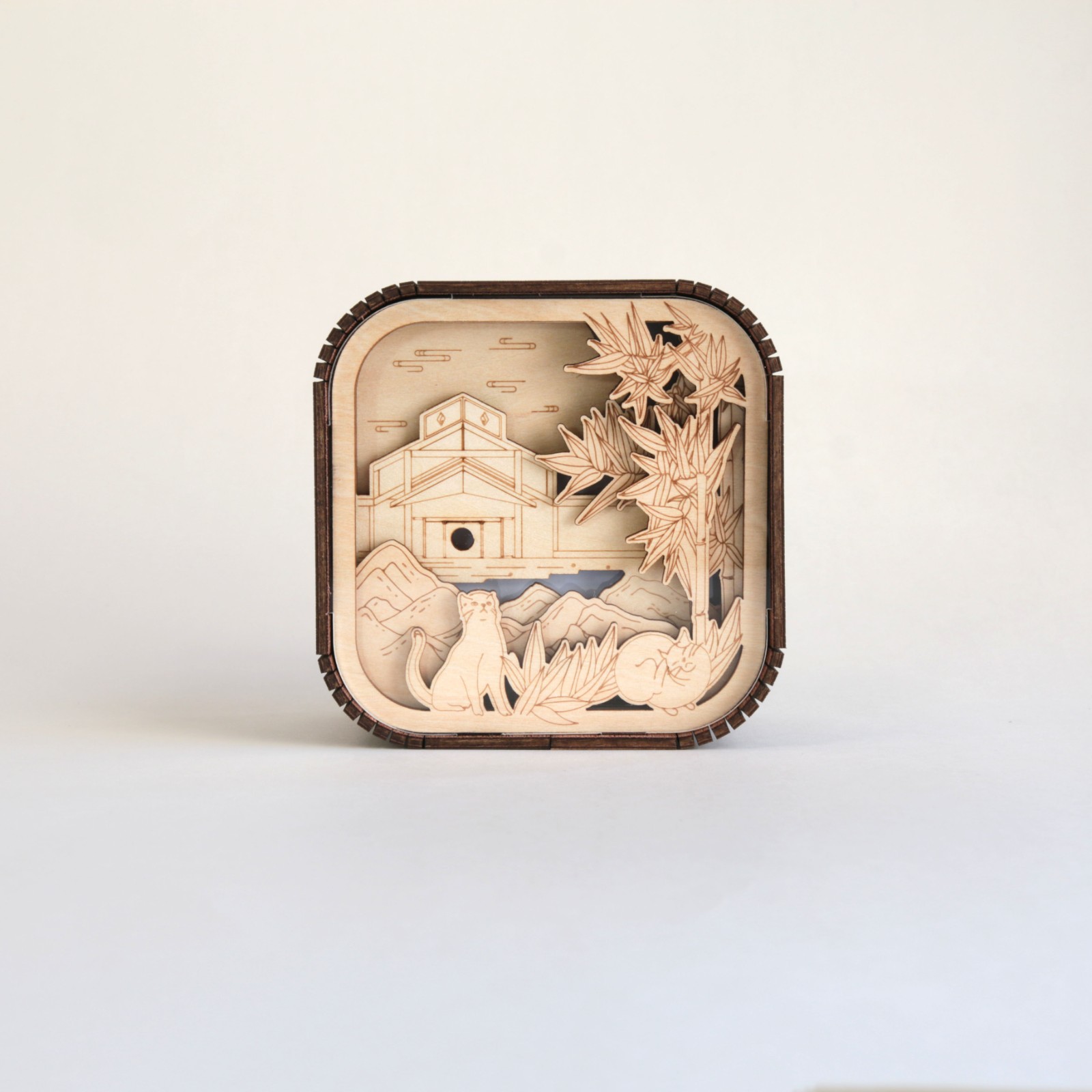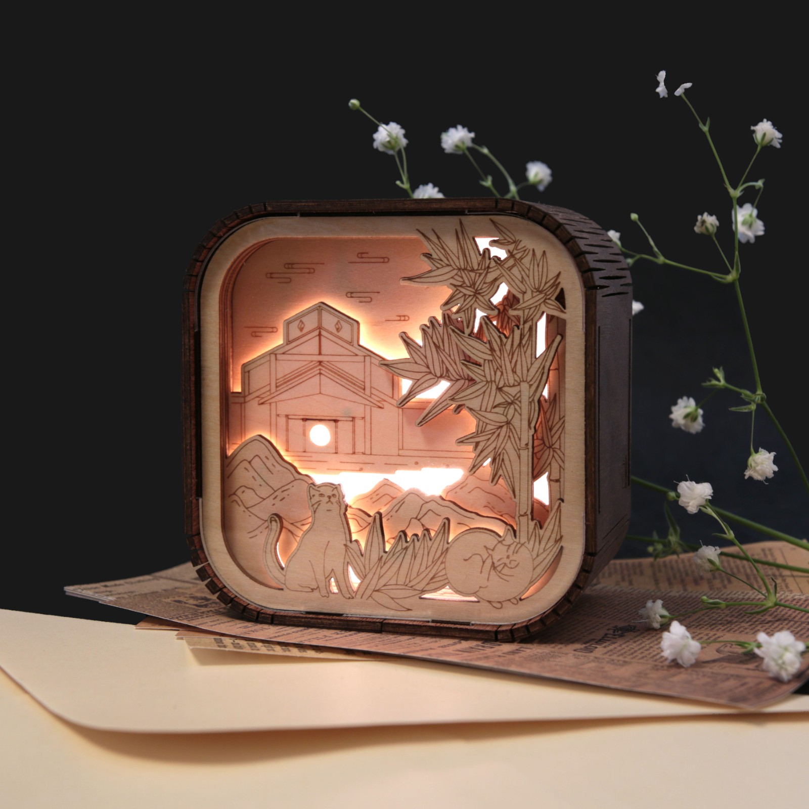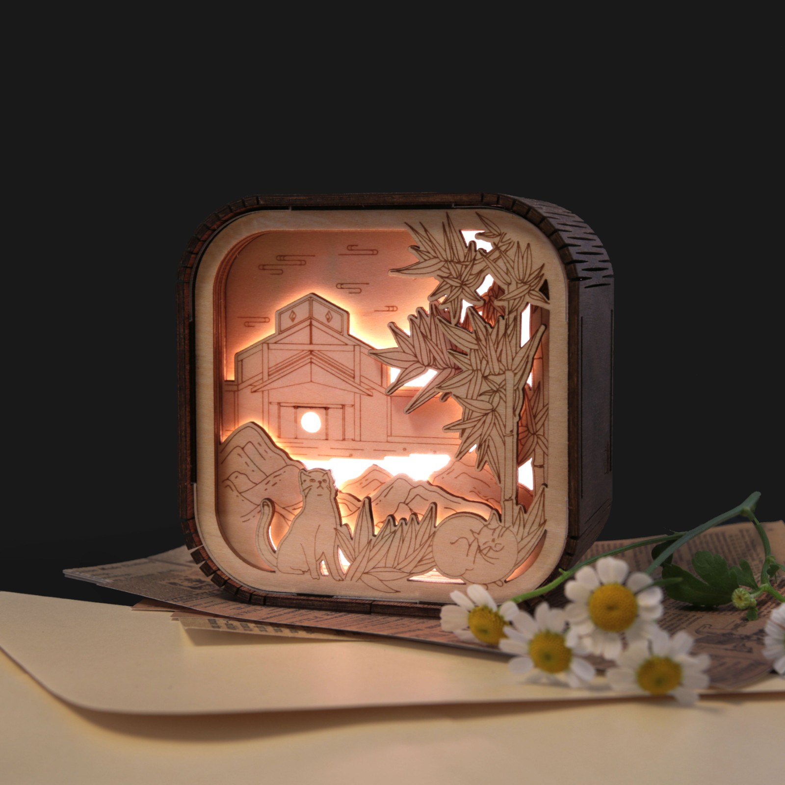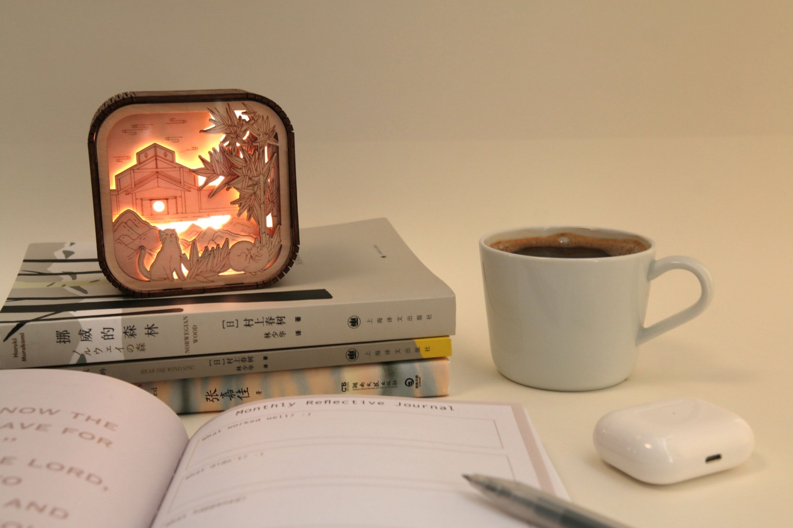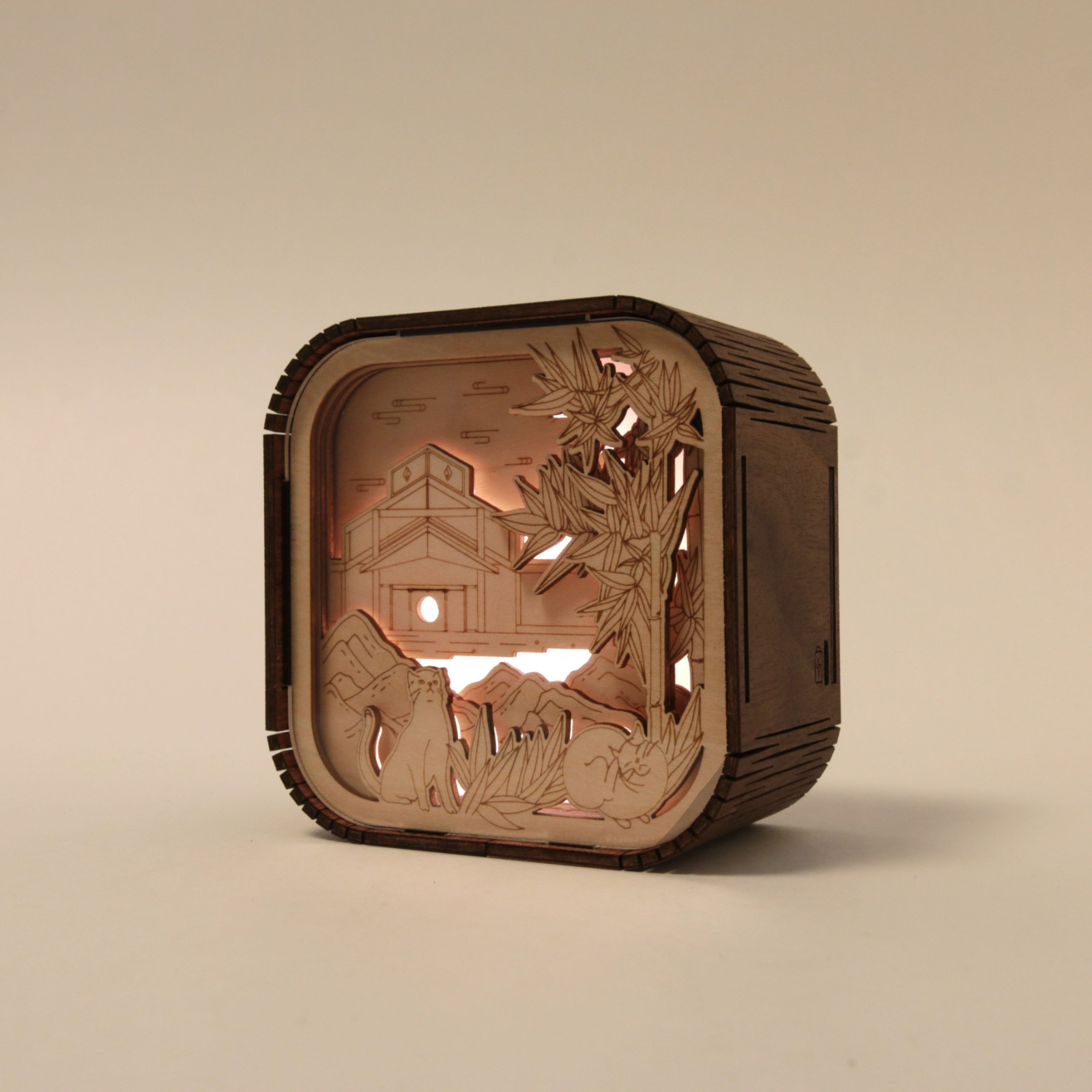 點一盞夜燈,觀一方世界。夜燈採用四層椴木鏤空交疊的設計,營造出豐富的層次感,錯落有致。透過樸實無華的木紋,層層疊疊的木質結構,令氤氳的燈光有如月光般柔和,在靜謐的夜晚散發出親近與溫暖。